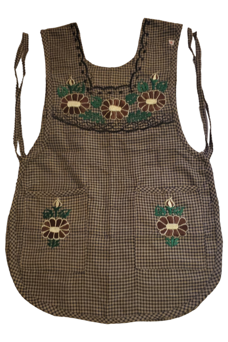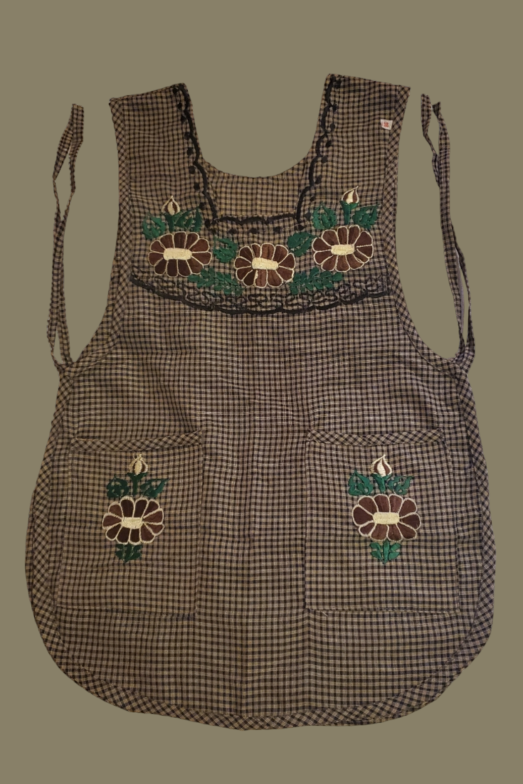 Traditional Mexican Apron for Women with Pockets and Beautiful Flower Embroidery - Mandiles para Mujer Mexicanos Mandil escapulario mandil Artesanal cobbler apron smocks - Brown